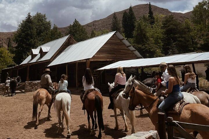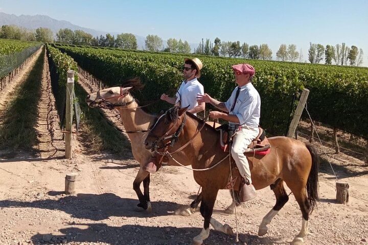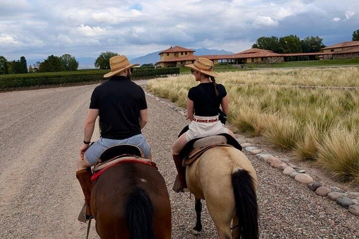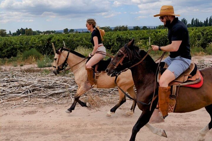 Cabalgata de 2 horas por viñedos con vistas al Volcán Tupungato. Regresando con empanadas y vino.