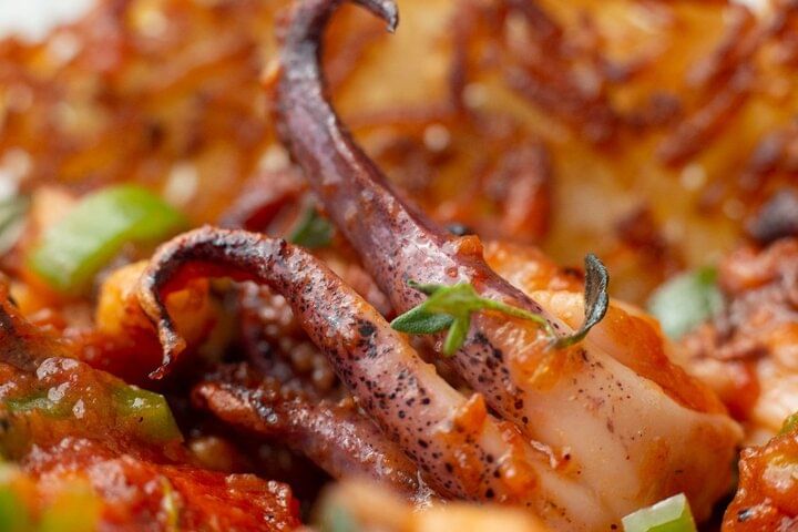 Lincoln a la parrilla, tomates, anacardos, y chile molido.